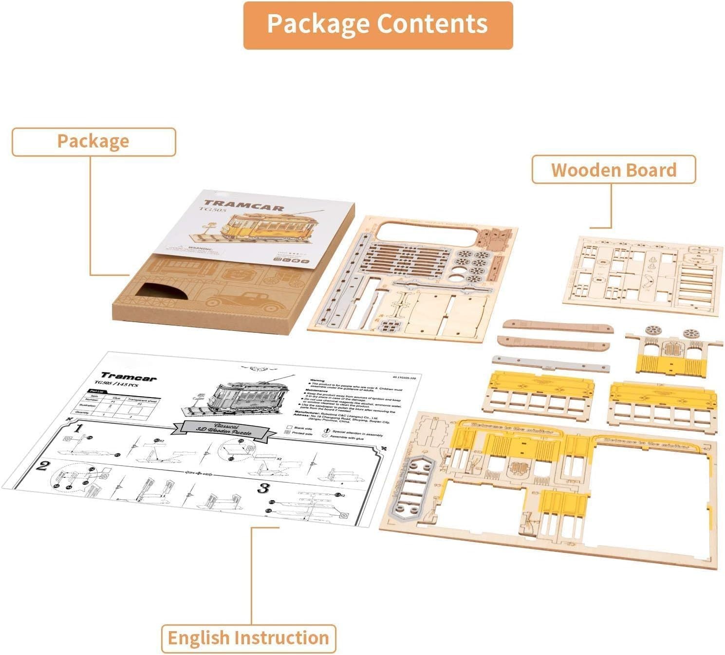 US Local ROBOTIME 3D Puzzle Tram Car Wooden Model Kits For Adult To Build Your Own Laser Cut Jigsaw Building Construction Crafts Kits And Best Birthday Gifts TG505