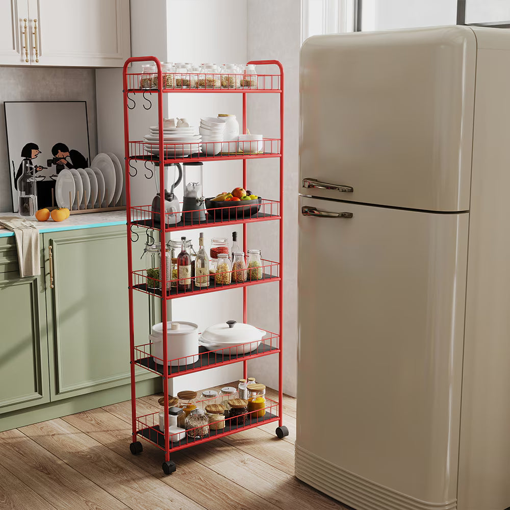 Product Name: 6 Tier Slim Rolling Storage Cart, 10" Mobile Shelving Unit with Wheels, Metal Wire Storage Shelving Rack with Baskets for Kitchen Bathroom Office Laundry Narrow Piaces, Red
