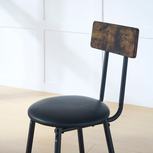 Product Name:Round bar table and stool set with shelf, upholstered stool with backrest, Rustic Brown, 24.17"W x 24.17"D x 36.02"H