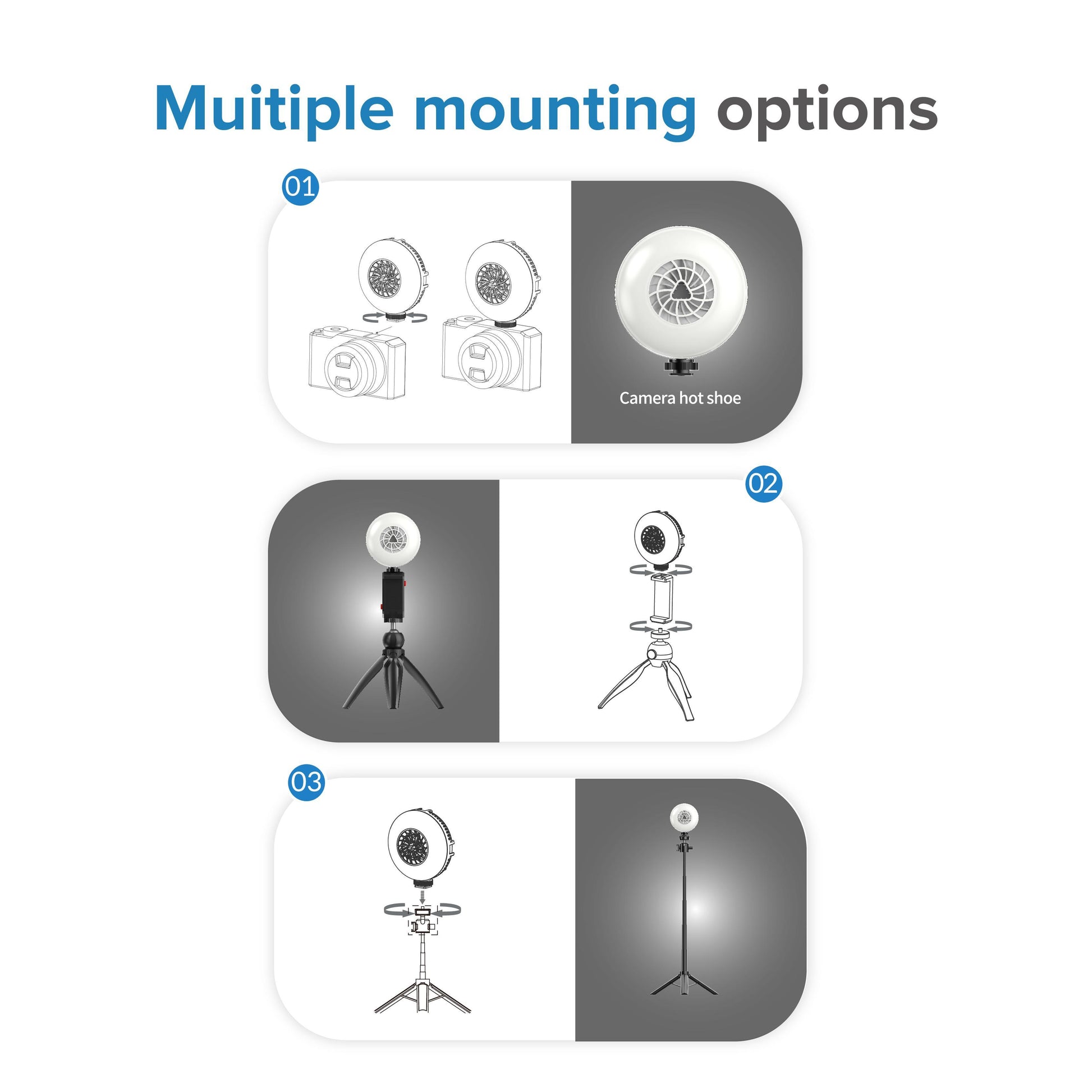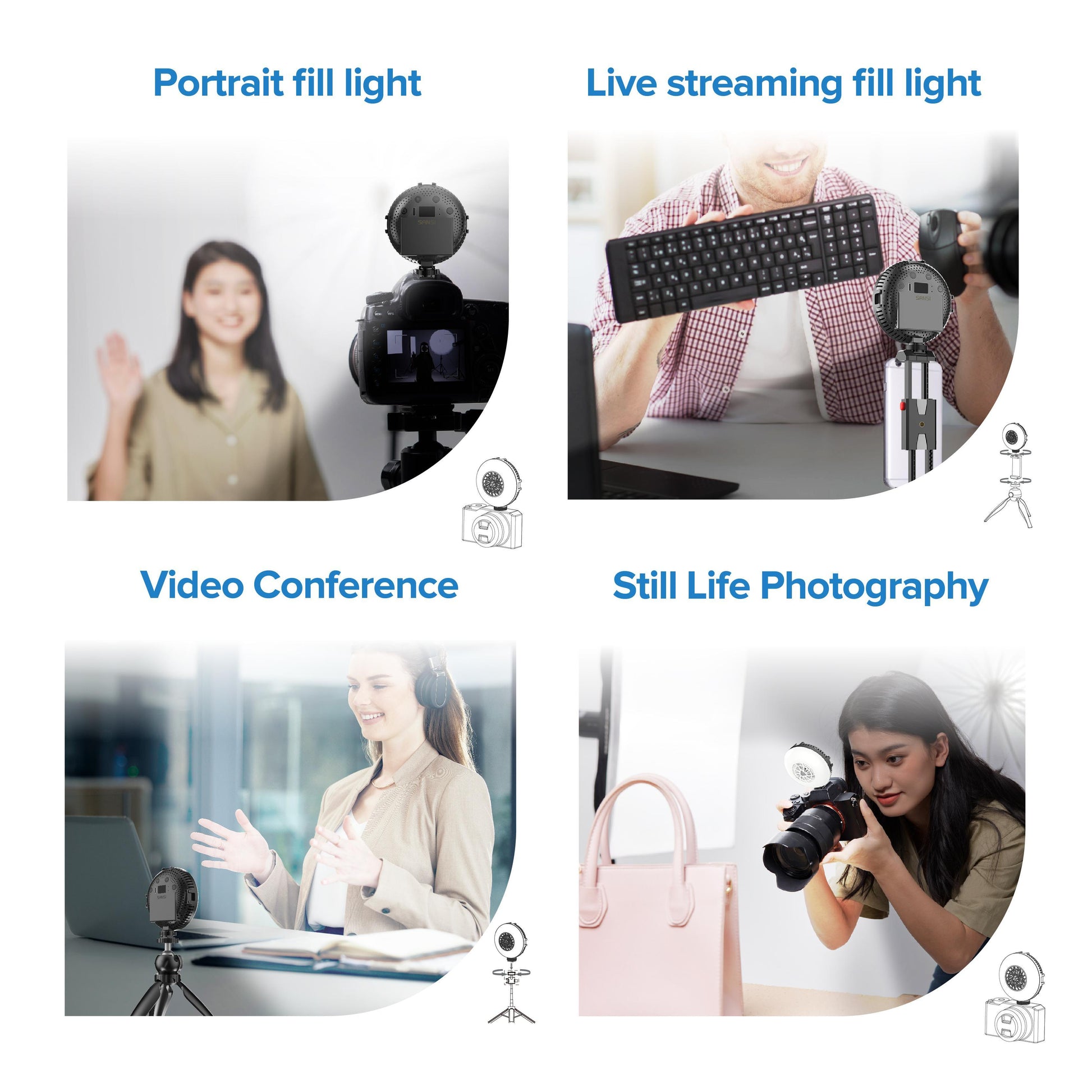 US Local SANSI Portable Rechargeable Fill Light, 8.6W Selfie & Video Light With 9 Color Temperatures & 5 Brightness Levels For Phone, Camera, Laptop, Makeup, Video Calls, Camping