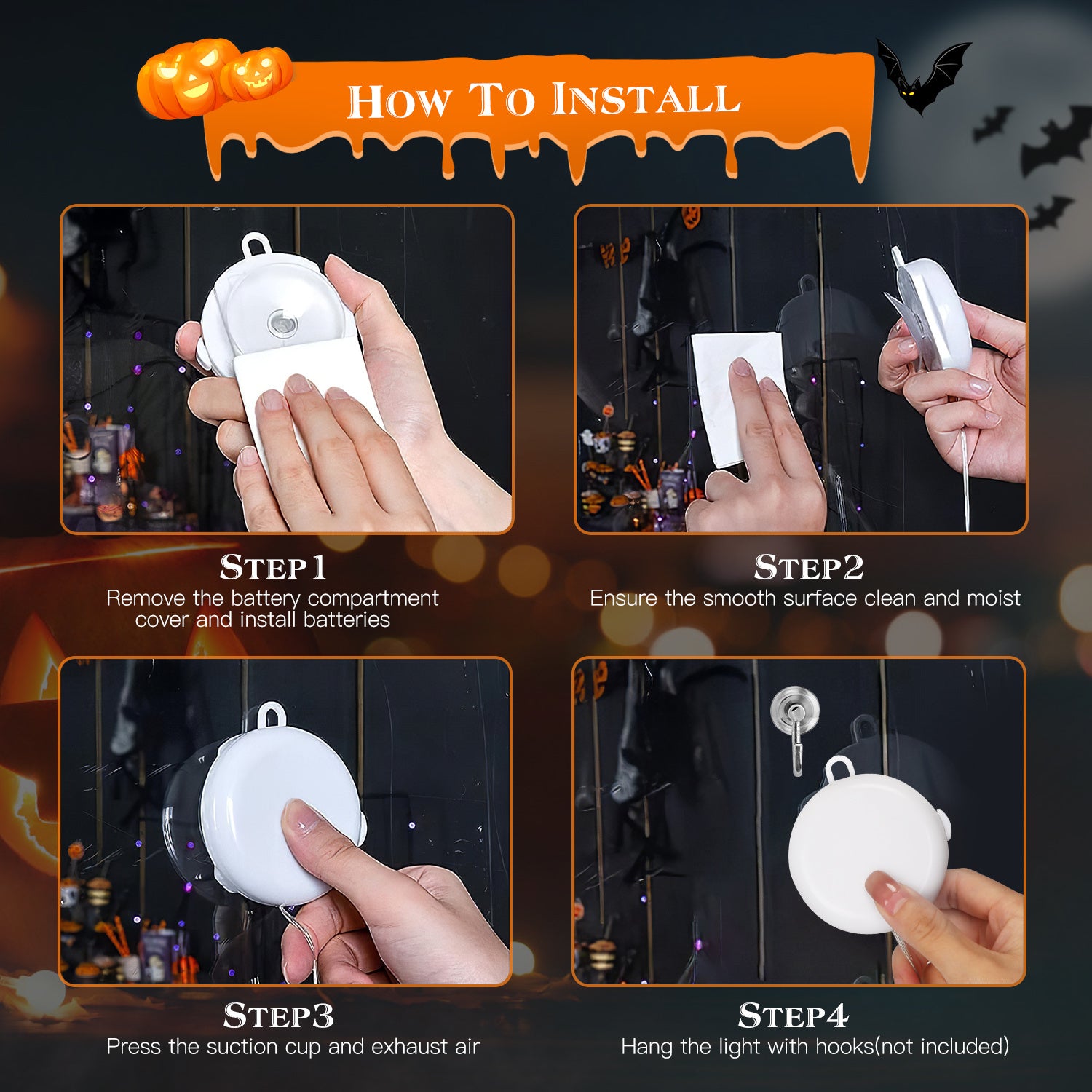 - *Easy To Install*: Come with convenient suction cup and hanging hole,allow you to easily install these cute Halloween lights on any smooth surface,like glass,gates,cabinets or anywhere you want.