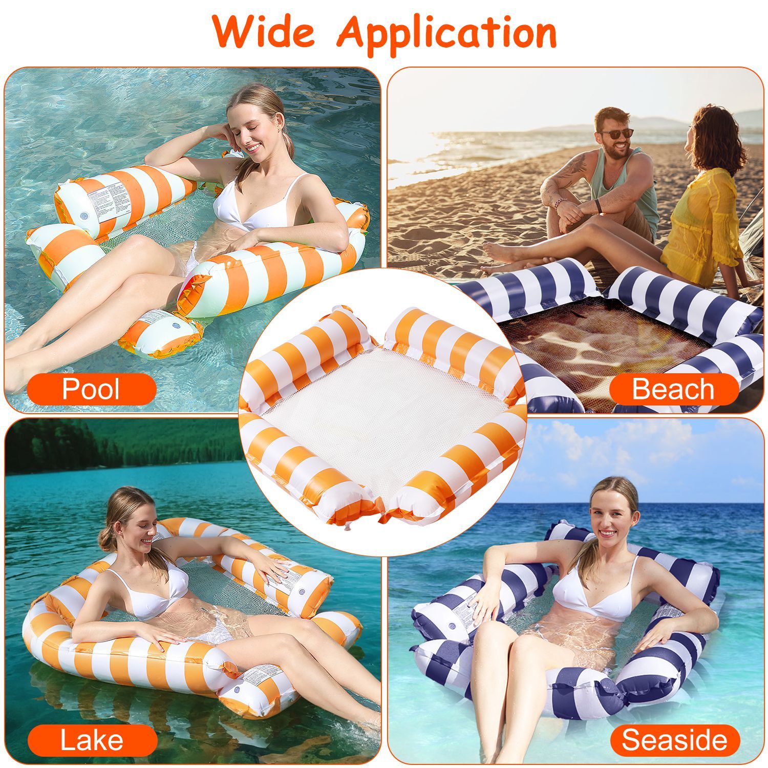 - *High Buoyancy Pillow & Cooling Mesh*: ?The 2 adult inflatable hammock floats features high buoyancy pillows that are connected to a soft cooling mesh, providing great support for heavy-duty bodies no matter how you move or adjust. You can freely change positions on the pool floats, relax, and entertain yourself in the swimming pool.