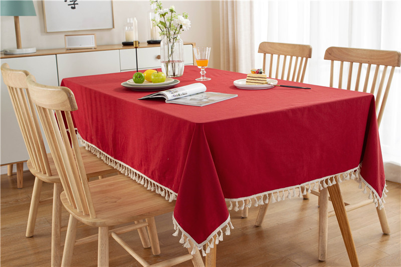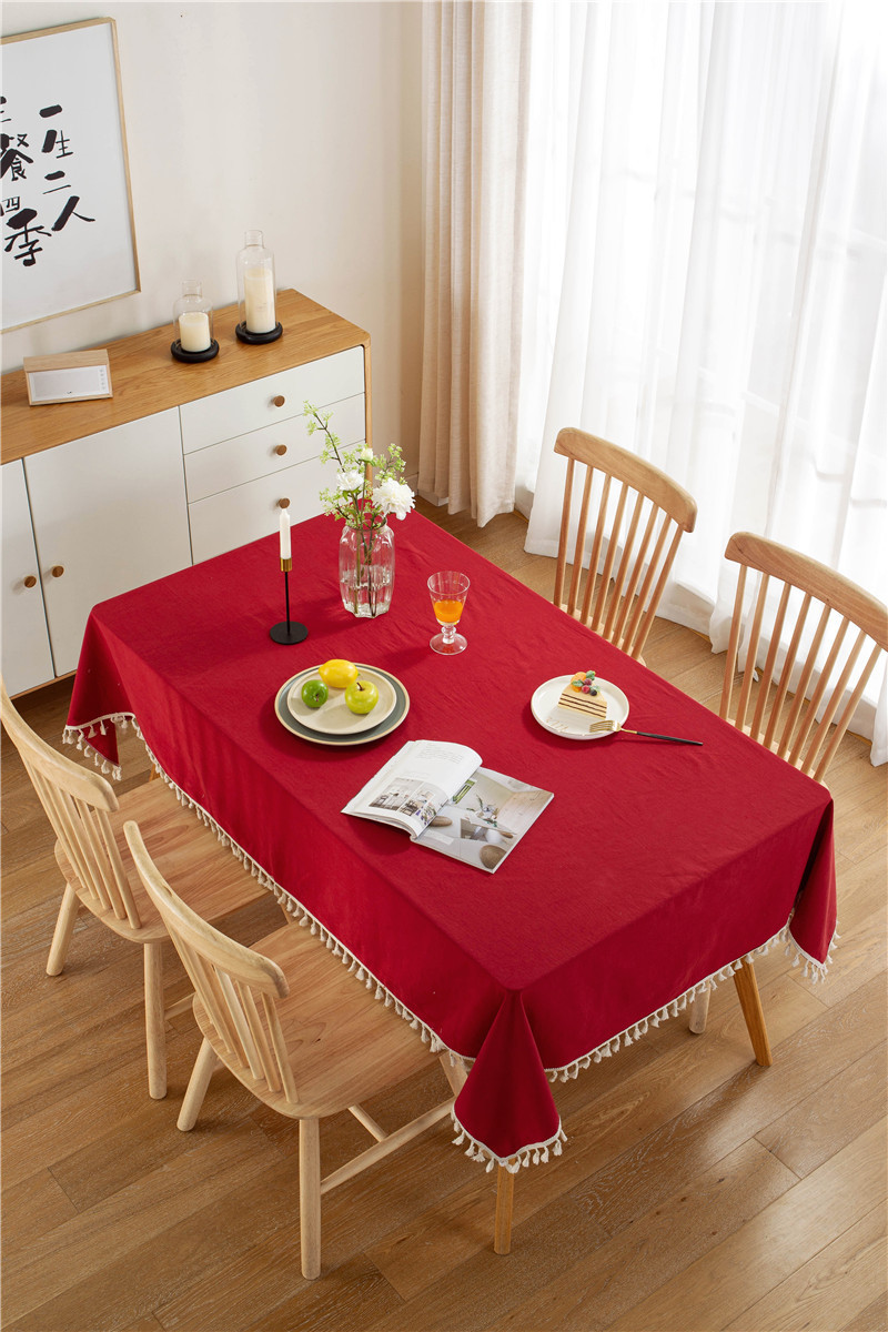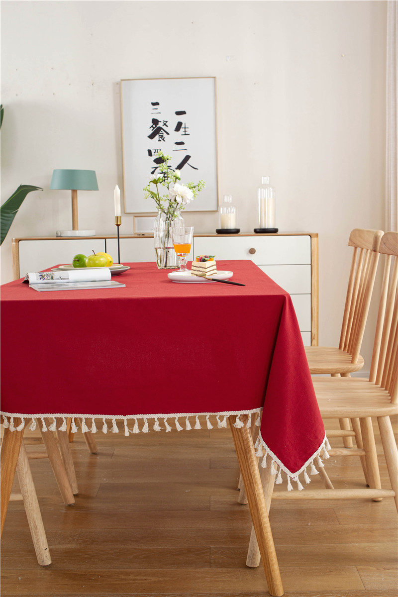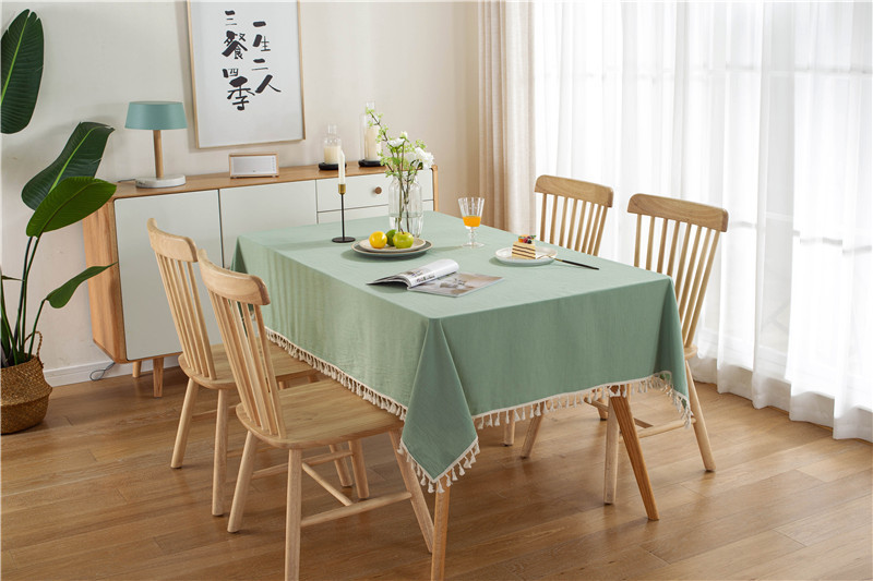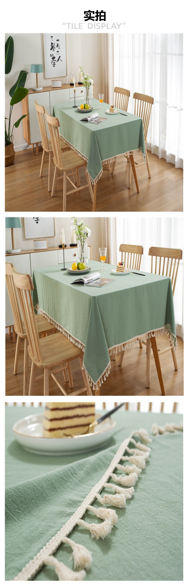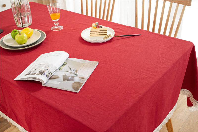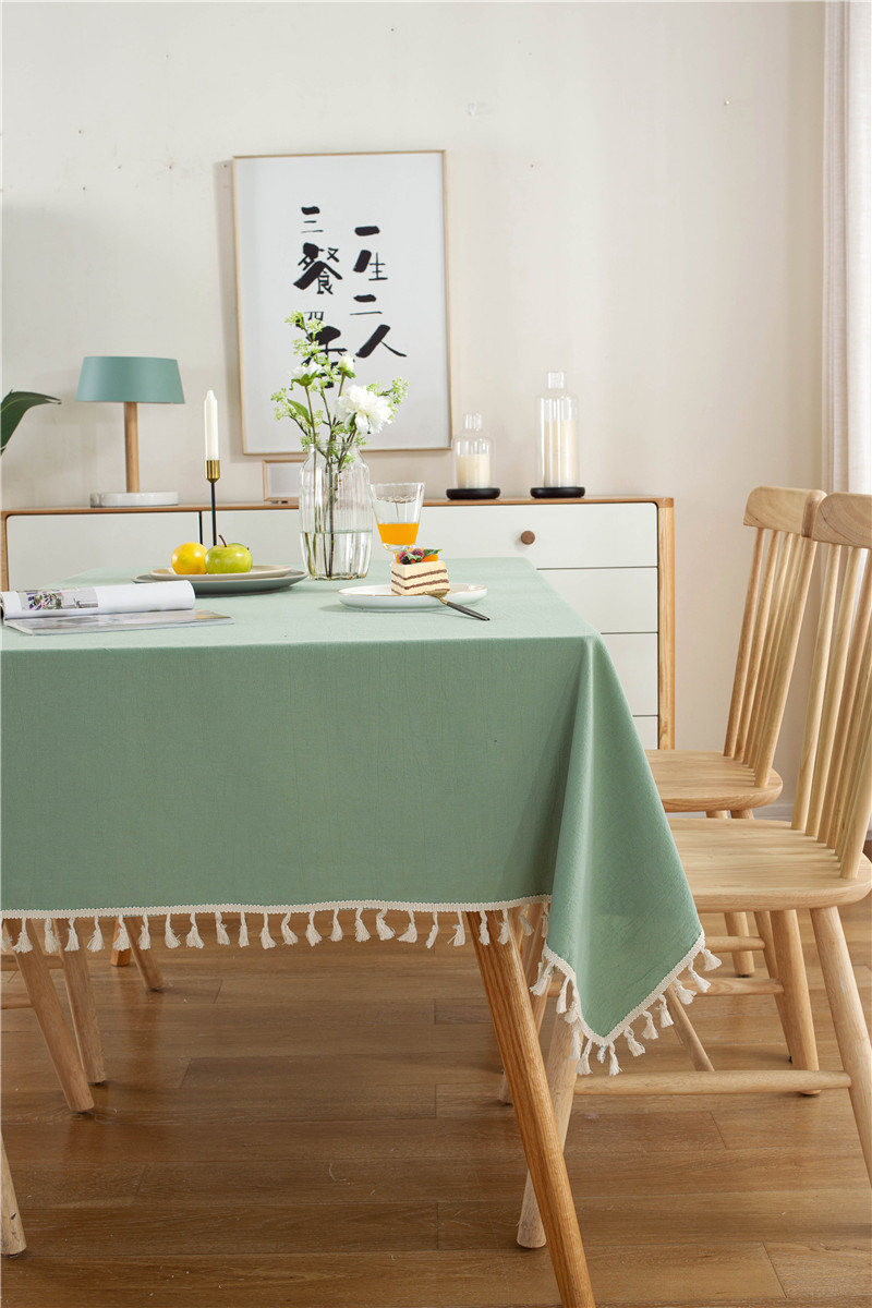 Simple Tassel Tablecloth Pure Color Washed Cotton Tablecloth