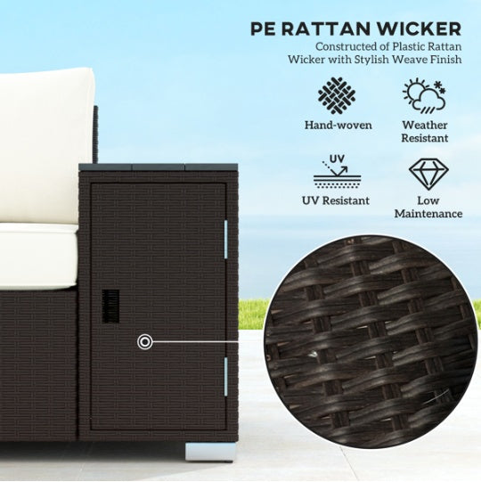 - - Steel frame with plastic wicker to withstand outdoor elements
