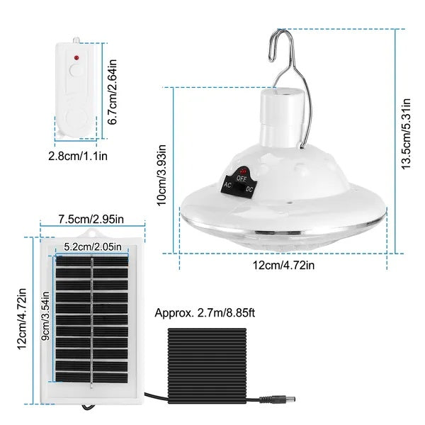 Solar Panel: 12cm x 7.5cm x 1cm/4.72in x 2.95in x 0.39in (L x W x H)