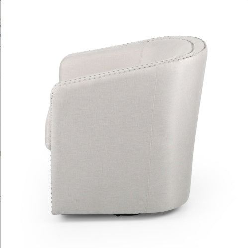 Combine a touch of modern with timeless design to get the best look for your home. Featuring a cozy tub design and convenient swivel rotation, our club chair brings you excellent comfort and style. This chair is finished with a double nailhead trim for a dash of sophisticated charm. Perfect for reading, relaxing, or watching a movie, this club chair blends seamlessly into any interior space. Includes: One (1) Chair Material: Fabric Fabric Composition: 100% Linen Leg Material: Iron Multiple Color Options Leg Finish: Black Hand-Crafted Details No Assembly Required Dimensions: 30.25 inches deep x 31.25 inches wide x 31.25 inches high Seat Dimensions: 21.50 inches deep x 21.25 inches wide x 18.50 inches high Arm Height: 25.60 Country of Origin: China