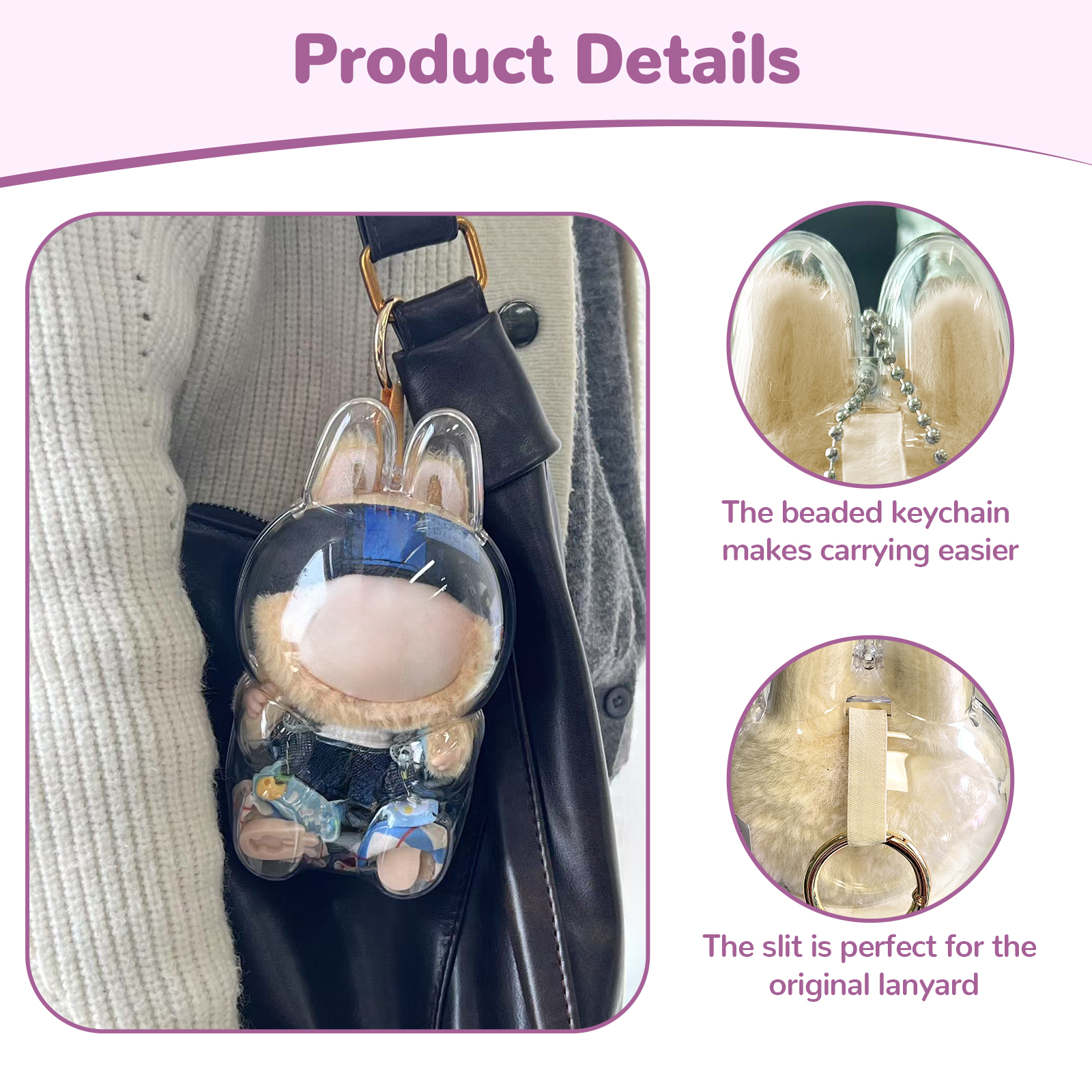 US Local Tocirelo Protective Case Cover Compatible With LABUBU Have A Seat, Clear Plastic Display Case With Keychain, Portable Acrylic Dustproof Accessories Protector Holder For Collectors Doll Not Included