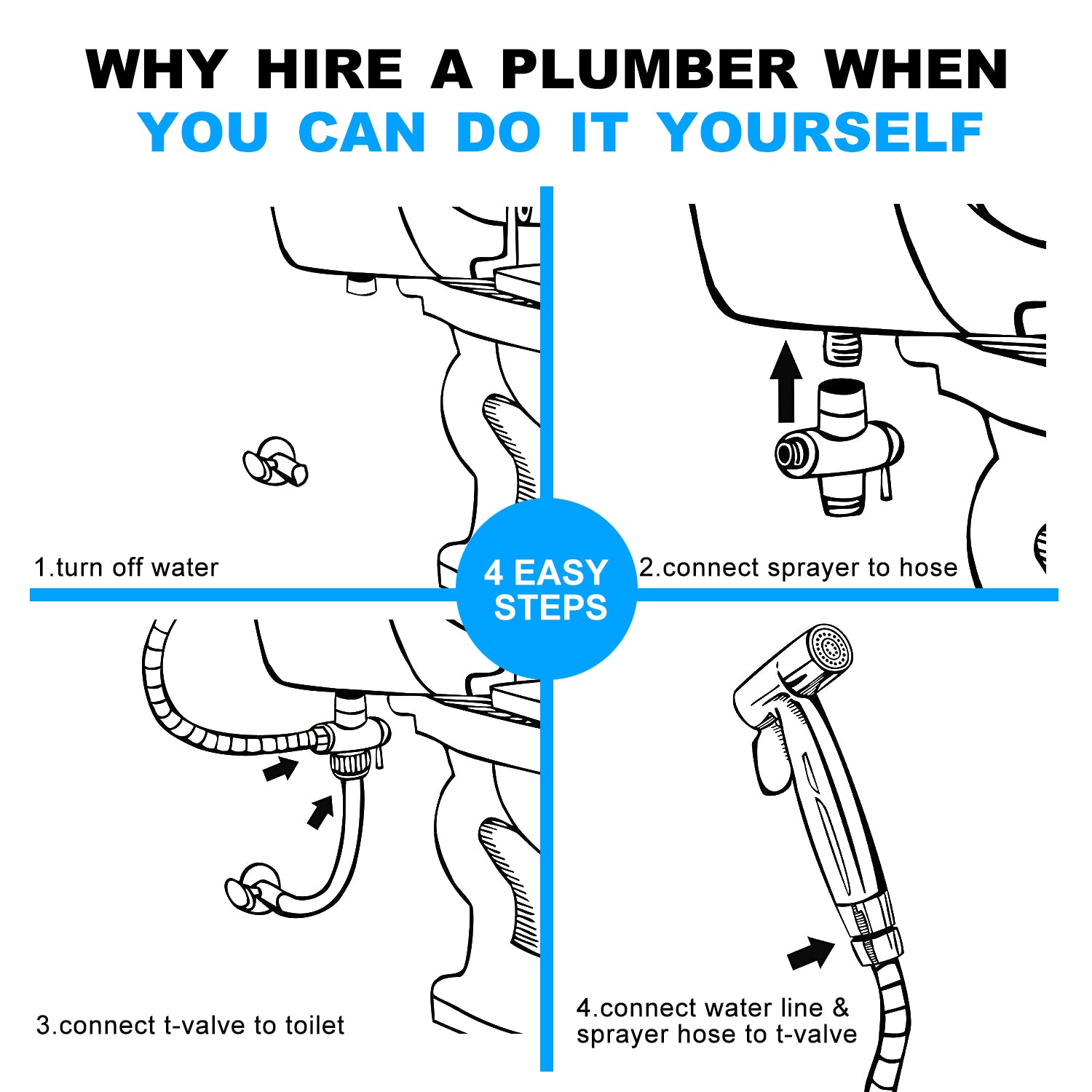 Quick and Easy Installation-Comes with the installation kit so you don't have to buy anything else. You can use it as a toilet sprayer for cloth diapers,? including? Sprayer , Hose, Sprayer Holder (for wall or toilet side mounting), teflon plumbers tape and screw.