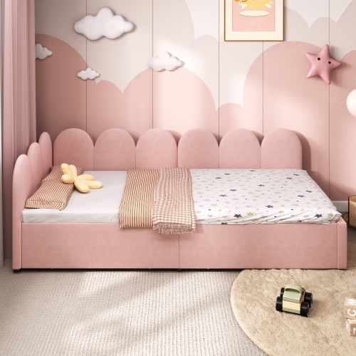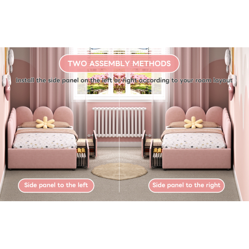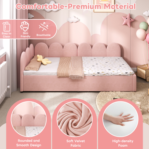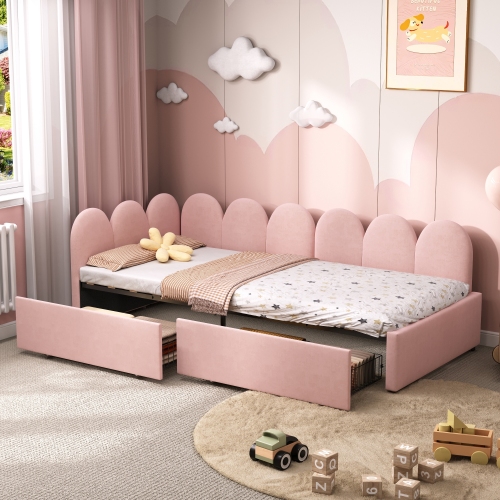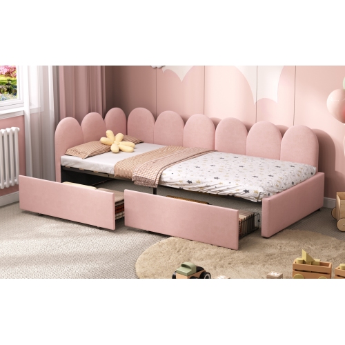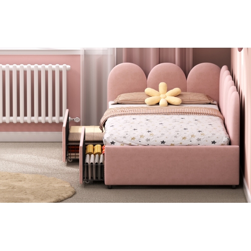 Product Name:3ft Single Daybed with Two Storage Drawers, Modern Youth Bed frame with Wooden Slats, Velvet Sofa Bed for Living Room/ Bedroom/ Study Room, 90X190cm, Easy Assembly, Pink (No Mattress)