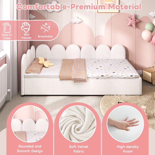 - [Rounded and smooth design] With its beautifully curved edges, this daybed combines style and safety. The smooth, rounded contours not only enhance its modern aesthetic but also help prevent accidental bumps and injuries, making it an ideal choice for families with children or pets.