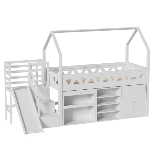 Product Name:Children's Single Bed with Slide & Stairs - Multifunctional Solid Wood Bed Frame with Storage Drawers, Magnetic Locker Door - White (90x190cm, No Mattress Included, UK Single Size)
