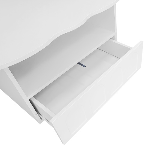 - Drawer with Curved Pattern: The table features a drawer with a curved pattern design that adds both functionality and aesthetics. The drawer has a push-to-open mechanism, ensuring a sleek, seamless appearance and easy operation.