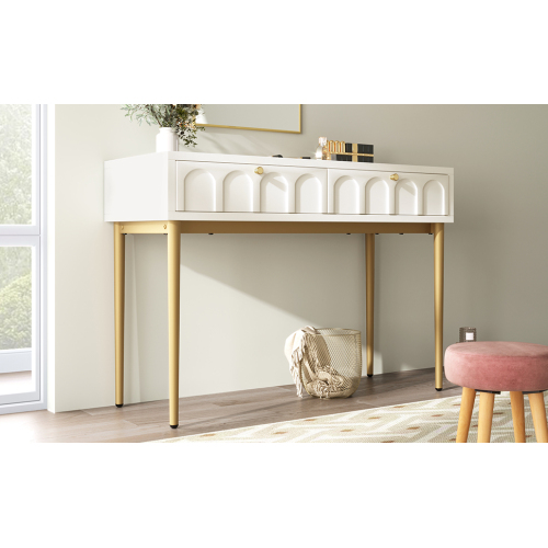 Product Name:Dressing Table With 2 Drawers 76.5 Cm High ,Chest Of Drawers Bedroom Highboard White Sideboard Chest Of Drawers for Bedroom, Cream-White -H76.5/W100/D45 Cm