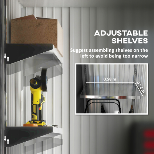 - 5 x 3ft size: A slightly small shed, offering moderate room for tools, equipment and more. Two inner adjustable shelves. Gloves included for set-up!