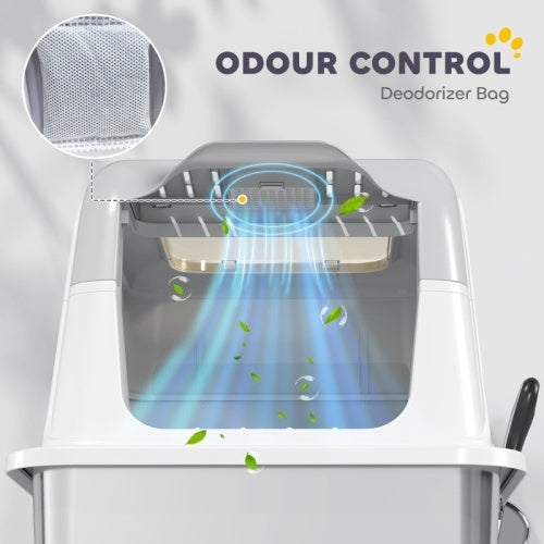 UK Local PawHut Extra Large Stainless Steel Litter Box, Enclosed Cat Litter Tray With Scoop, Deodorizer Bag, Front-Entry And Top-Exit