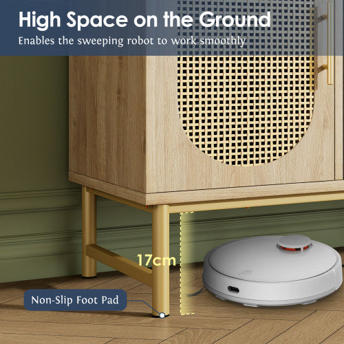 - **Stylish Woven Rattan Design**This storage cabinet combines faux woven rattan mesh with a wood grain veneer, offering a natural yet modern touch. The rattan cabinet is not only perfect for bedrooms but also serves as a storage solution for living rooms or offices. The 2 doors and 3 drawers provide ample storage space.