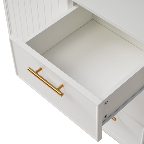 - Height-adjustable shelf: With its 3 spacious drawers on the centre Side. Hinged door on the left and right, concealing a height-adjustable shelf that divides the available space into two variable compartments, it provides ample storage space for linen, jewellery and other utensils. Adjustable up and down in 5cm steps, 3 heights in total.