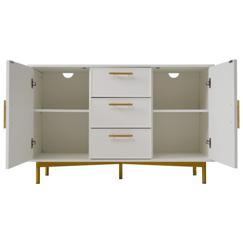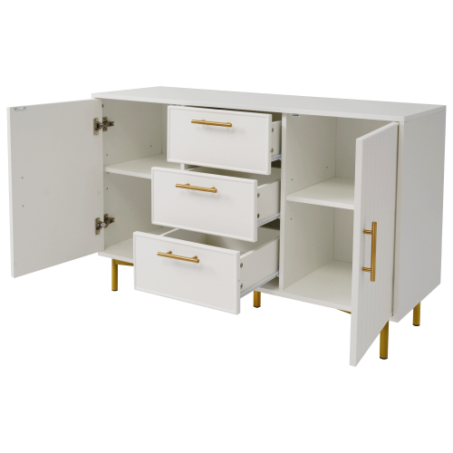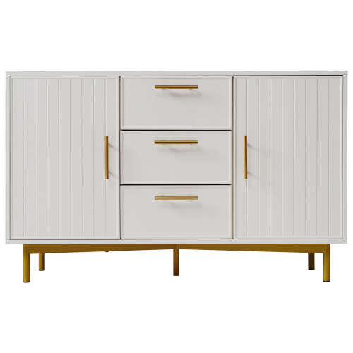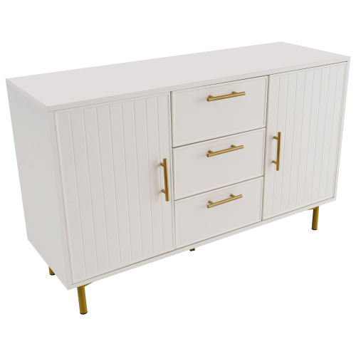 Product Name:Sideboard Cabinet for Living Room, Chest of Drawers with with 2 doors and 3 drawers, Adjustable shelf, White, 40D x 120W x 75H CM