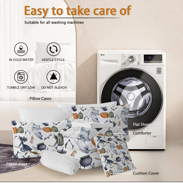 US Local 8PCS Halloween Comforter Set, Witch Pattern Bed in A Bag Bedding