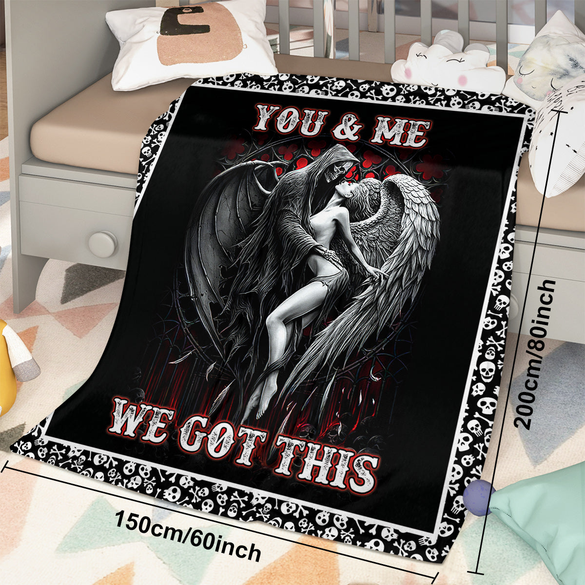 US Local Beauty and Ghost human skeleton Printed Halloween Soft Cozy Lightweight Durable Plush Flannel Throw Blanket for Bedroom Living Rooms Sofa Couch 50Inch*60Inch