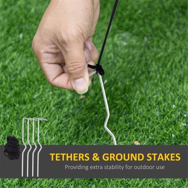 - - Includes four ground stakes and two drawstrings to help keep it anchored on windy nights