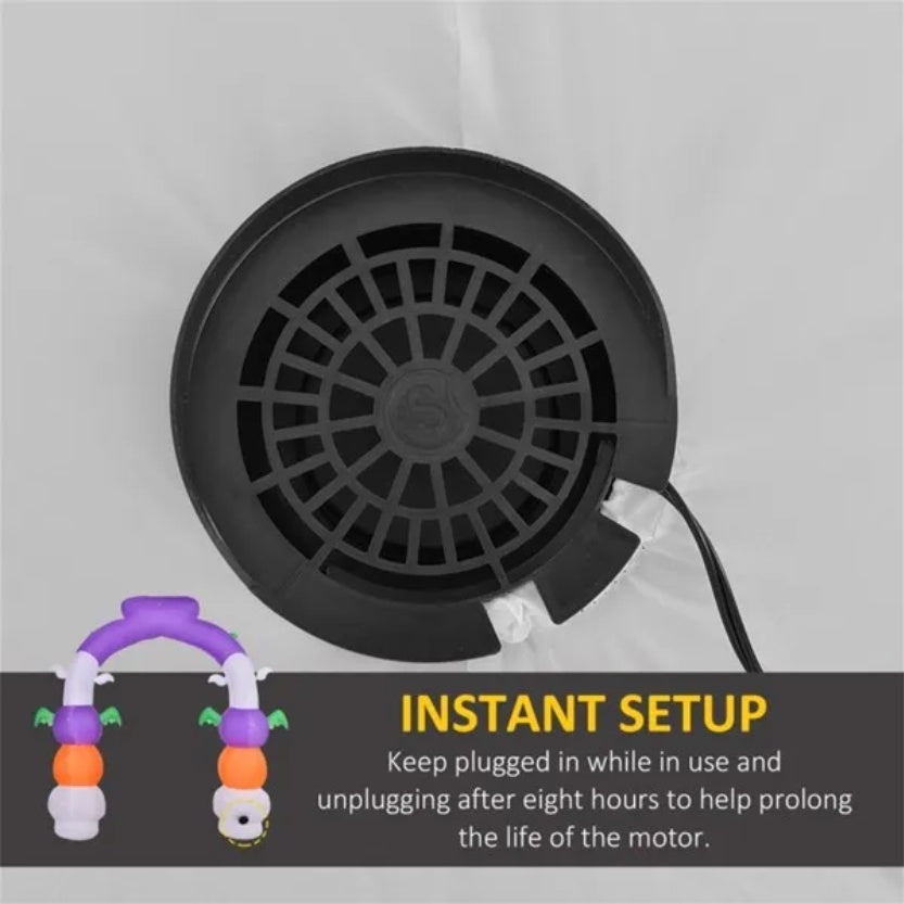 - - Inflatable Halloween archway with pumpkins, skulls and ghosts, bats and archway beams, and yellow lettering brings a cohesive Halloween display together