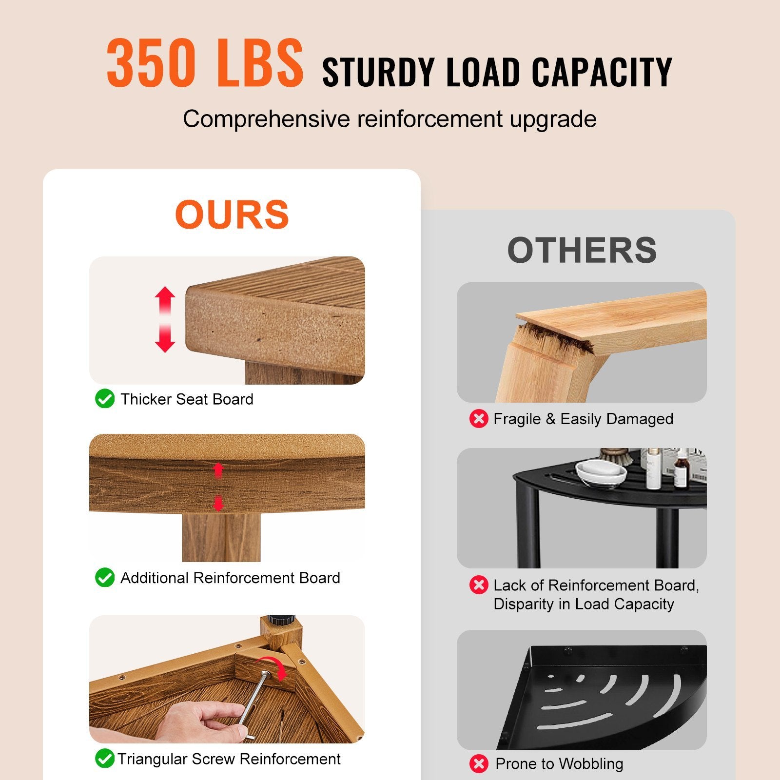 US Local VEVOR Corner Shower Bench, Faux Wood Grain Polystyrene, 350 LBS With Storage Shelf, Water Resistant, Shower Stool For Inside & Outside Shower, For Bathroom, Living Room
