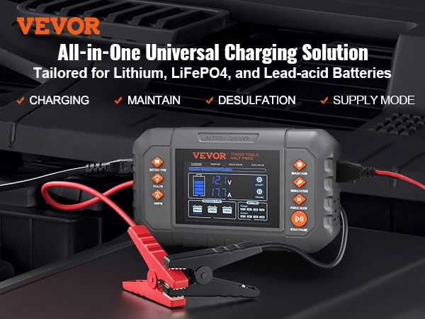 - Rich Accessories Included: You will receive 2 copper wire terminals, a power cord figure-eight tail plug (9.8 ft/3 m), and battery clamps. Our smart lifepo4 battery charger serves as an indispensable tool in your garage or car for all automotive, marine, and deep-cycle batteries, including flooded lead acid batteries in AGMs, GELs, SLAs, cars, trucks, SUVs, motorcycles, lawnmowers, boats, and more. Say goodbye to all your battery woes with this all-in-one battery charger.
