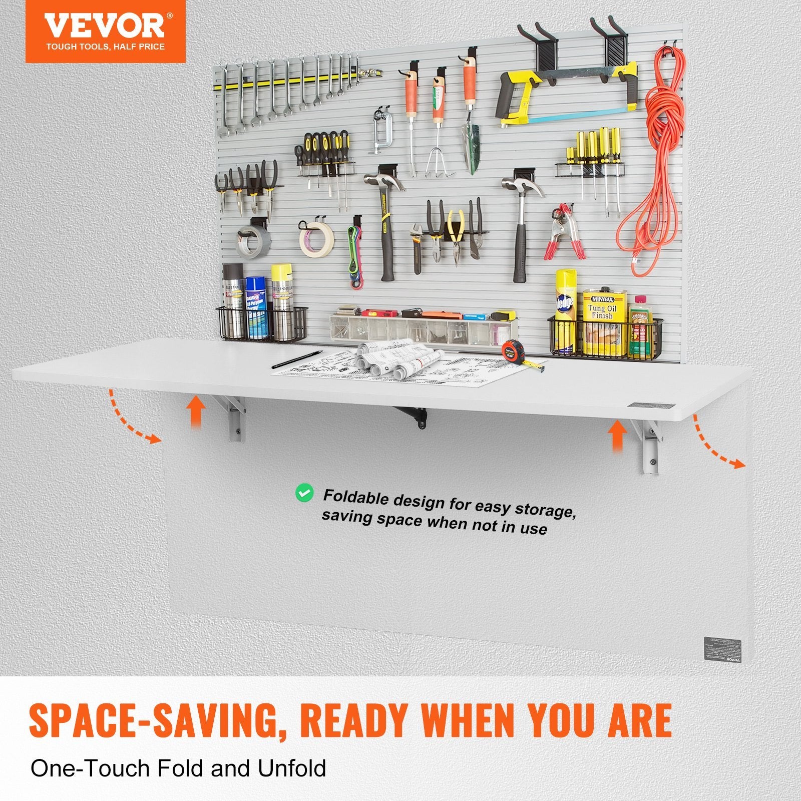 US Local VEVOR Wall Mounted Folding Table, Wall Mount Drop Leaf Table, Floating Desk With Iron Bracket, Fold Down Desk For Small Spaces, Home Office, Dining, Laundry Room, Kitchen, Bar, White