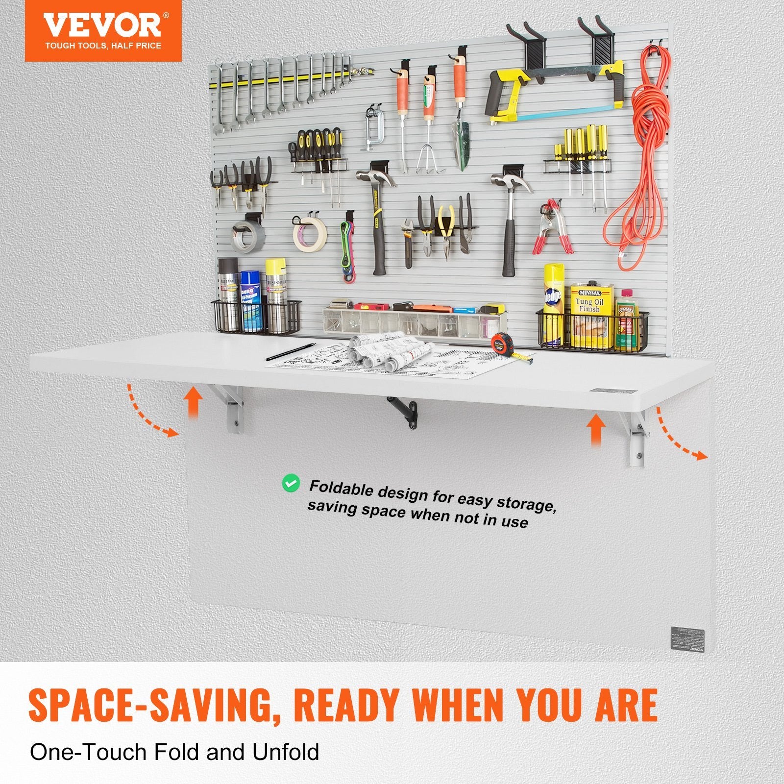 US Local VEVOR Wall Mounted Folding Table, Wall Mount Drop Leaf Table, Floating Desk With Iron Bracket, Fold Down Desk For Small Spaces, Home Office, Dining, Laundry Room, Kitchen, Bar, White