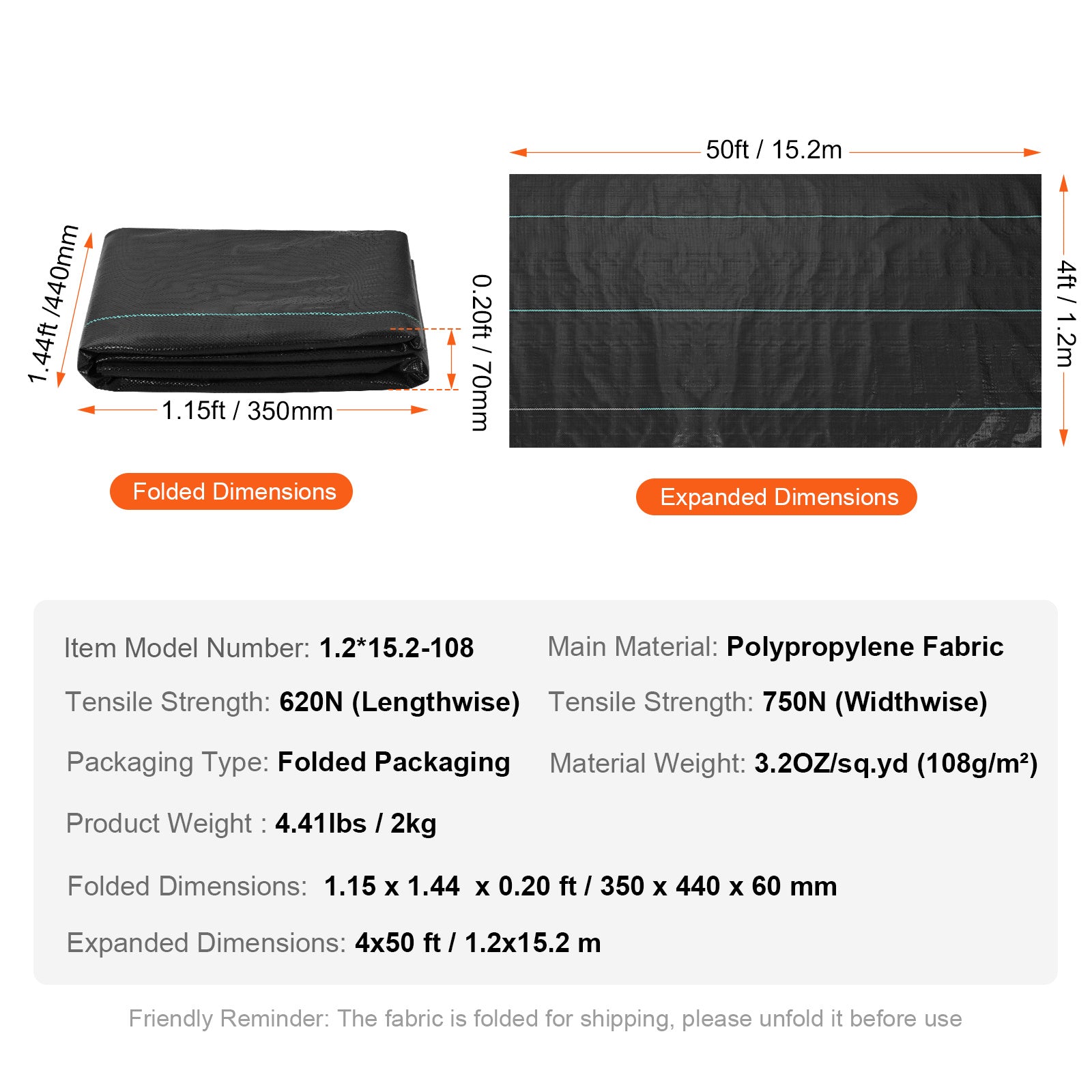 US Local VEVOR Weed Barrier Landscape Fabric Heavy Duty Woven PP Weed Control Mat