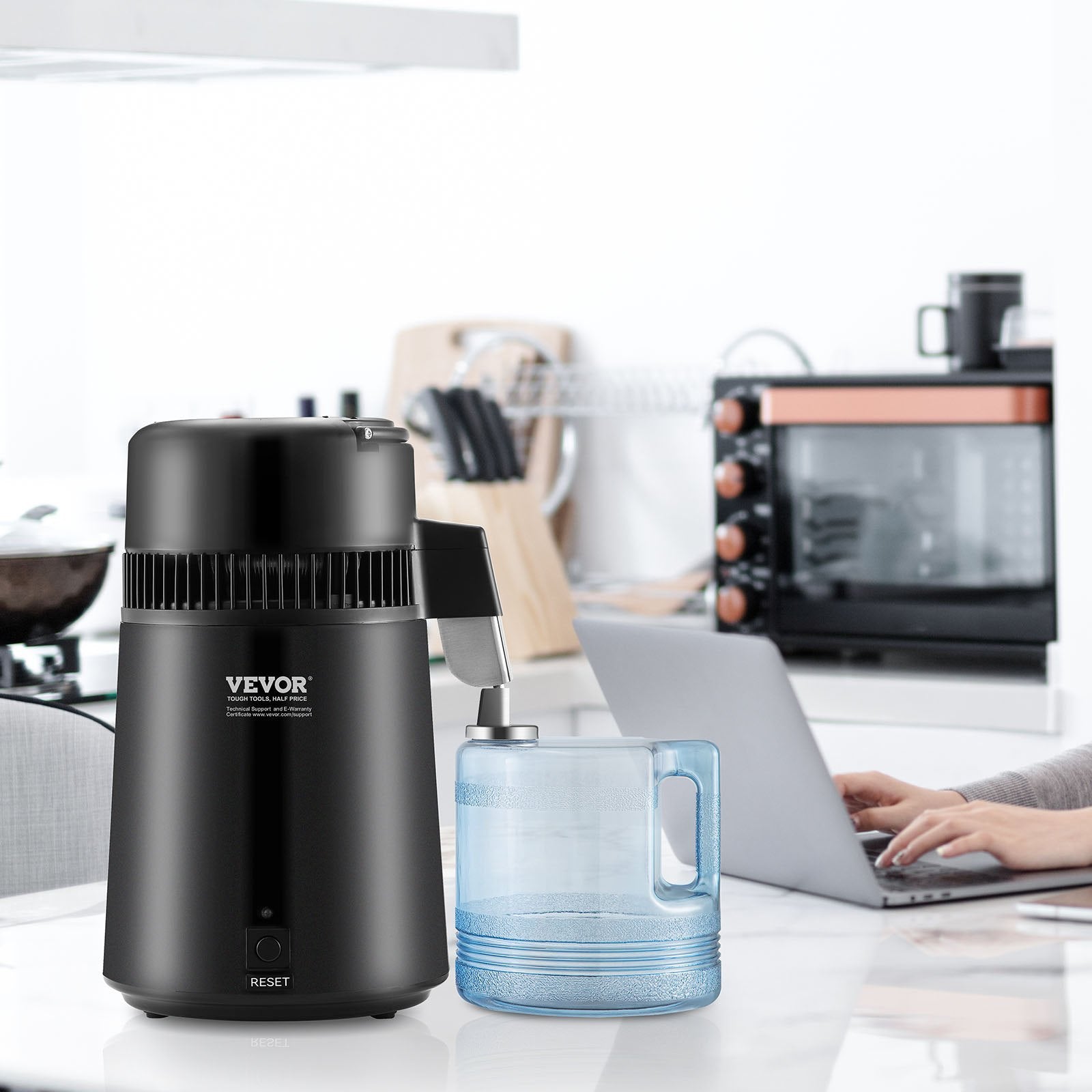 US Local Water Distiller, 4L 1.05 Gallon Pure Water Purifier Filter For Home Countertop, 750W Distilled Water Maker, Stainless Steel Interior Distiller Water Making Machine To Make Clean Water, Black
