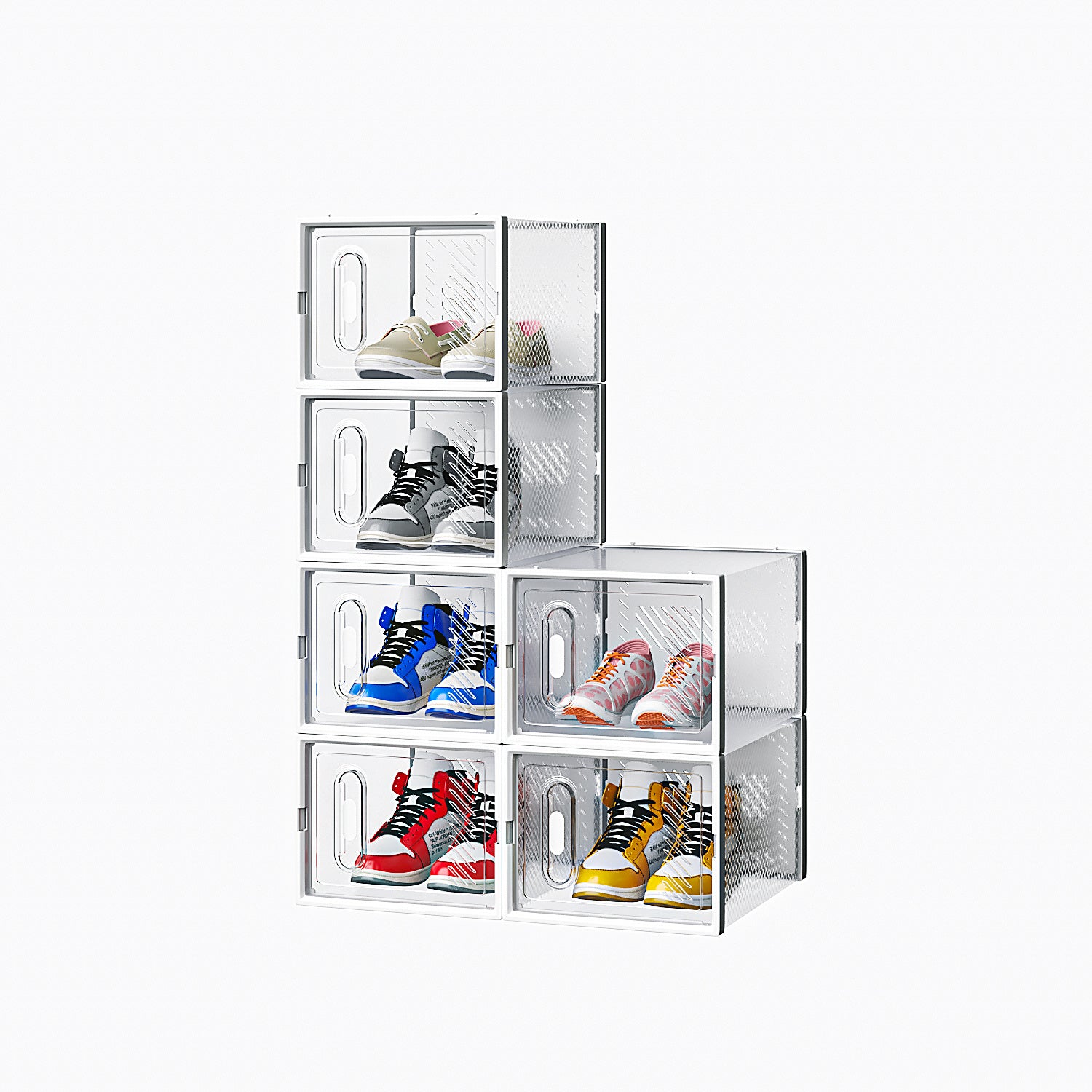 US Local White Medium 6PCS 35x25x19cm Shoebox, Plastic, Grid, Free Combination