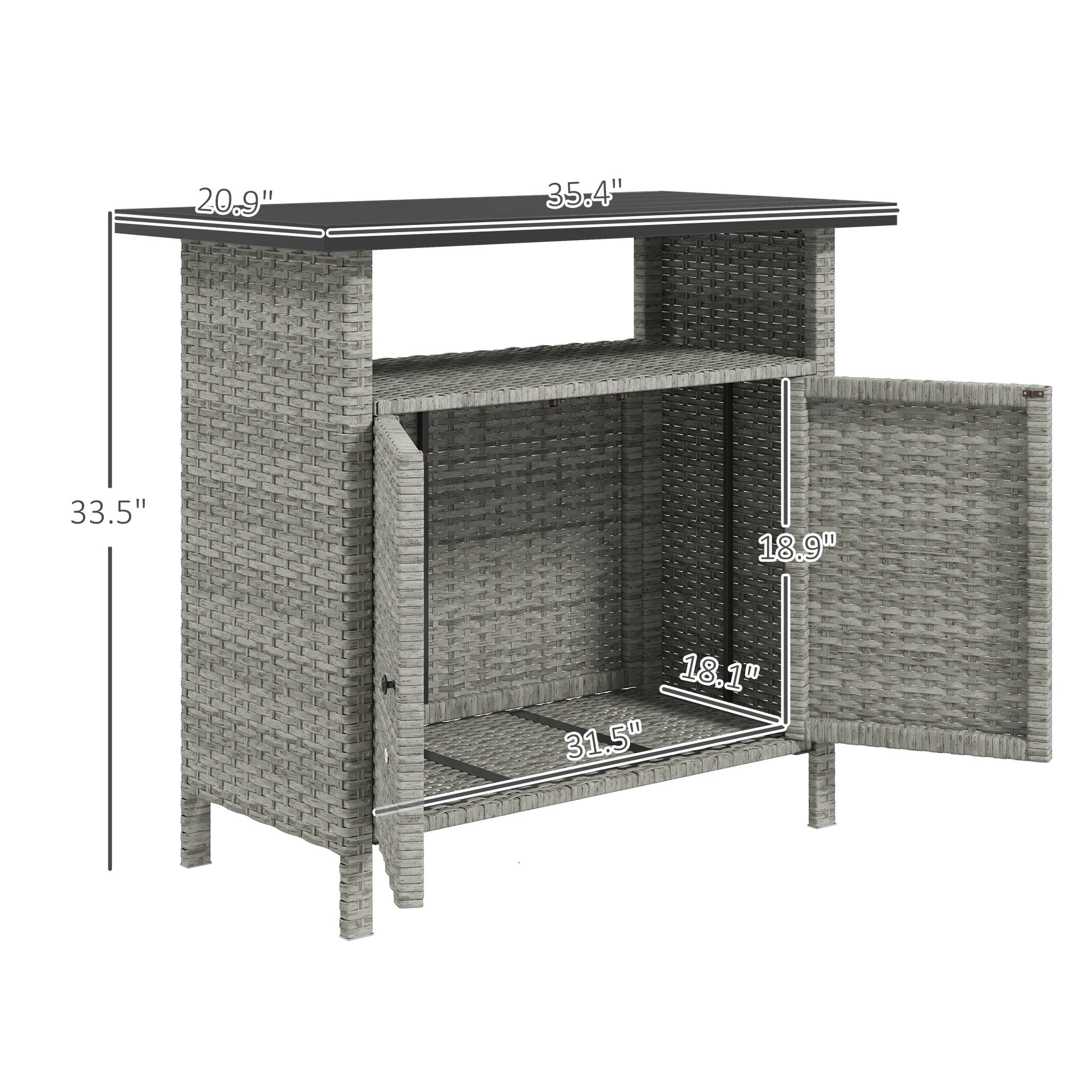 Wicker Outdoor Storage Cabinet With Two Doors And Shelf For Outdoor Pool Towel Storage, Gray