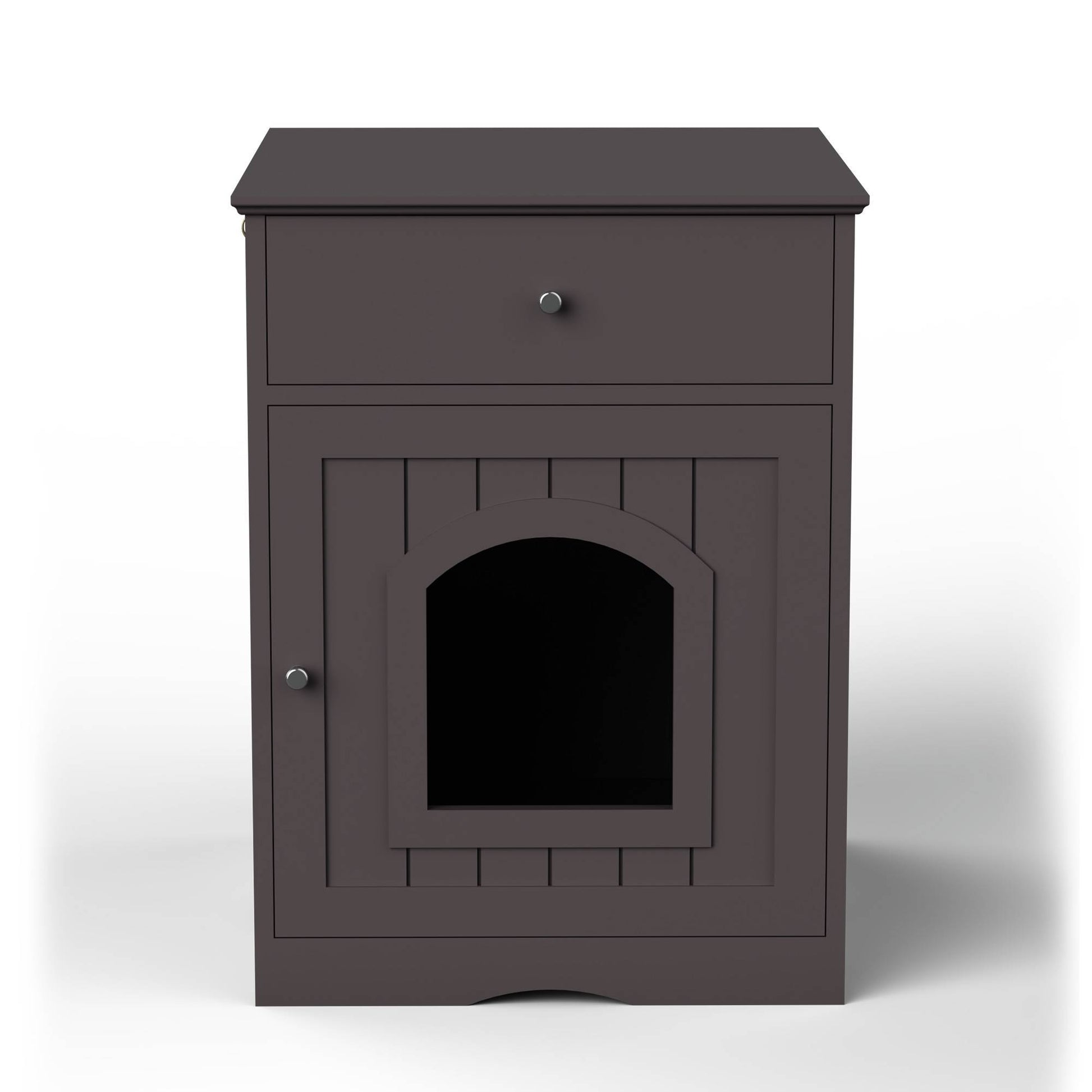 Wooden Pet House Cat Litter Box Enclosure With Drawer, Side Table Indoor Pet Crate