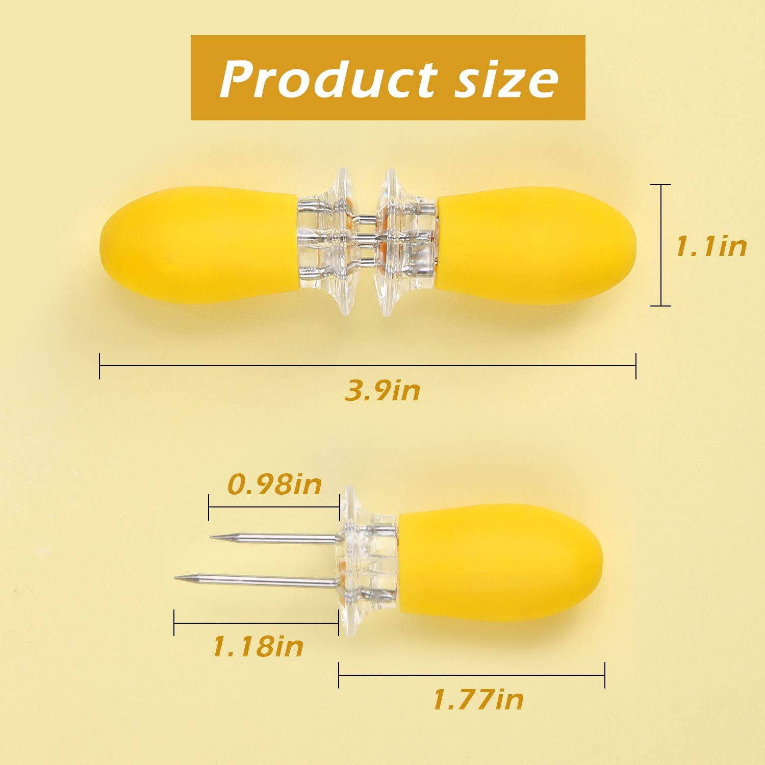 Quantity: 10pcs/5 pairs of yellow corn cob holders, brightly colored, small and exquisite, easy to carry, are a great choice for your grilling corn on the cob
